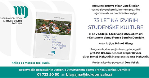 Kulturno društvo Miran Jarc Škocjan vas ob slovenskem kulturnem prazniku vljudno vabi na predstavitev knjige