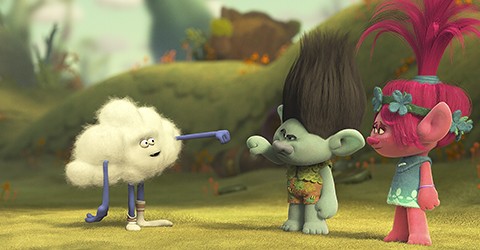 Film je slikovit in si sposoja podobo vlaken, krzna, bleščic in kričečih barv, kar bo gledalce potunkalo v povsem novo, puhasto izkušnjo. Pa da ne omenjamo las – kričečih pričesk v barvah bombonov, ki s svojo višino kljubujejo gravitaciji in so kronski dragulj trolov po vsem svetu. Pomembno dimenzijo pa risanki daje glasba, ki nadgrajuje njen značaj. »Besedila so del pripovednega orodja,« pravi Dohrn. »Nismo želeli, da bi se pripoved ustavila, ker se je pač začela pesem.« Tako sta z Mitchellom zasnovala zgodbo in začela iskati popevke, ki bodo ustrezale tonu določenega prizora ali nam poglobile vpogled v osebnost tega ali onega lika. Leta in leta sta premetavala pesmi, na začetku sta celo vztrajala pri zgolj klasikah; a ko se je ekipi kot glasbeni izvršni producent pridružil Timberlake, ni bilo dileme – spisal ali sospisal bo nekaj novih popevk.